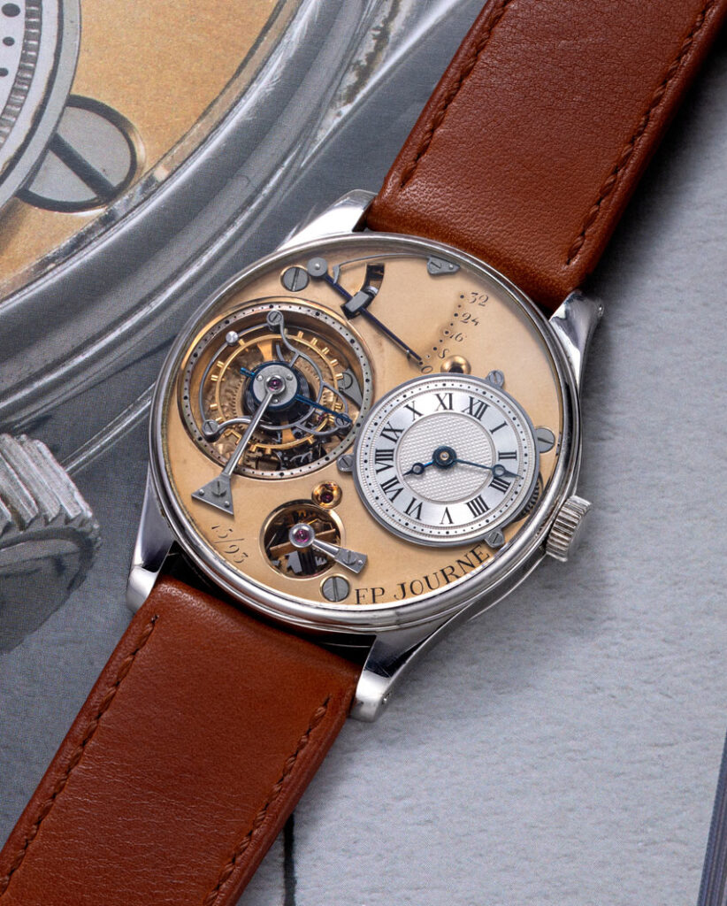 History unfolded in Geneva in November last year when the second-ever watch made by François-Paul Journe went under the hammer at Phillips for US$8.4 million. The Tourbillon Souverain à Remontoire d’Egalité heralded the launch of the F.P. Journe brand in 1999. This prototype tourbillon in platinum, with rhodium-plated brass movement and early design cues, is a cornerstone of independent watchmaking.