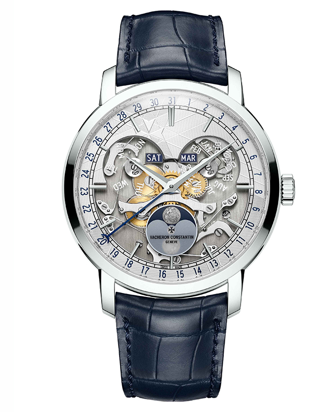 Vacheron Constantin has embellished its Traditionnelle collection with three watches in 950 platinum. The Traditionnelle Openface trio – Tourbillon Perpetual Calendar Retrograde Date, Tourbillon Retrograde Date and Complete Calendar – reveal fresh takes on the line’s signature openworked dial, a style which allows wearers to glimpse the sophistication of the movement within. The openwork embraces 18-carat gold intricately inserted with sapphire, and a hand-guilloché pattern motif inspired by the Maltese cross to mark the watchmaker’s 270th anniversary. The uniqueness of these individually numbered models is guaranteed by expert human craftsmanship that necessitates 10th-of-a-millimetre accuracy.