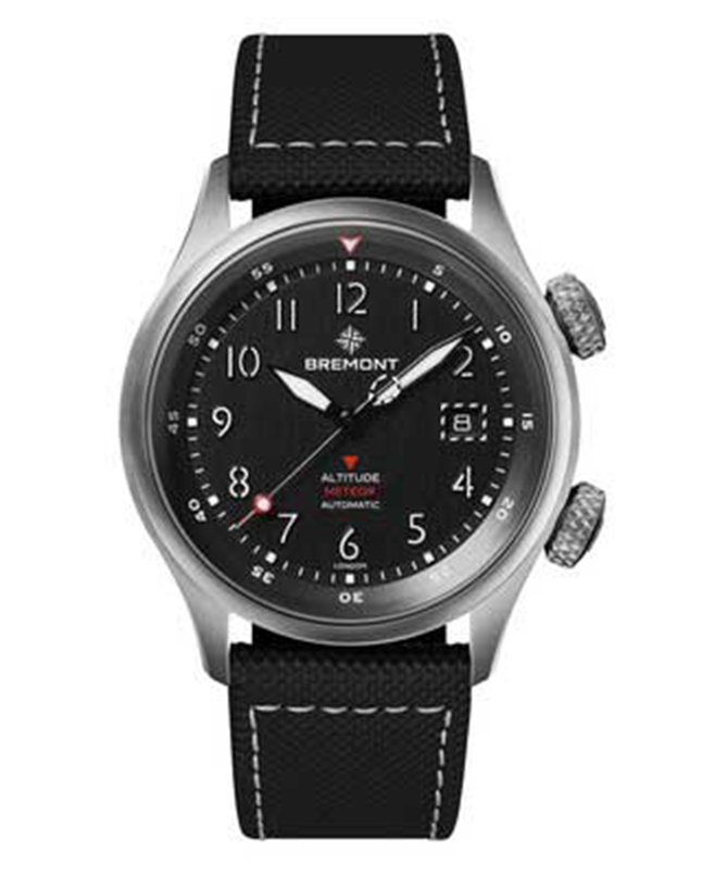 Bremont debuted a trio of pilot watches to embellish its Altitude collection, with pride of place going to the MB Meteor, an upgraded iteration of the MB model. Specifically engineered to withstand the potentially huge pressure that occurs when testing an aircraft’s ejector-seat mechanism, its 42mm titanium case reduces weight and enhances durability, while the three-part Trip-Tick design offers a slimmer profile and trims the lug-to-lug distance to improve wearability.