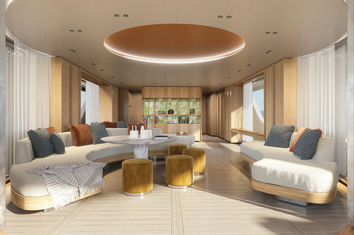 With sumptuous ribbed wood and plexiglass fittings, as well as three different Main Deck layouts that allow for a more convivial, versatile or minimal living area at the discretion of its owner — welcoming in unrestricted natural light that spreads across the saloon.