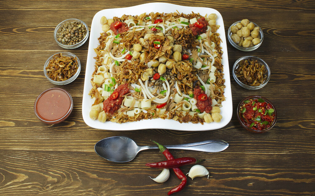 Meals are often accompanied by karkadeh (hibiscus tea) or mint-infused lemonade. Desserts such as basbousa (semolina cake soaked in syrup), kunafa (shredded pastry with cream or cheese), and date-filled pastries round out the experience.