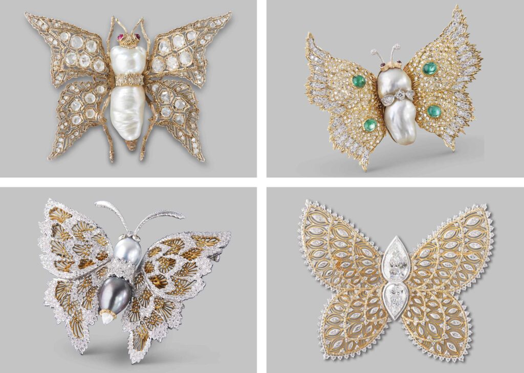 Begin your journey with an introspective exploration of family legacy. Guided by the symbolic butterfly, emblem of transformation and continuity, this room showcases four butterfly brooches, each representing a different generation: Mario, Gianmaria, Andrea, and Lucrezia Buccellati. As you traverse this space, an evocative reconstruction of the Buccellati family’s private study unfolds, featuring photographs, memorabilia, and heartfelt correspondence. The voice of Gianmaria, a pivotal figure in shaping the Maison’s international success, brings this intimate family story to life, weaving tradition with creative evolution.