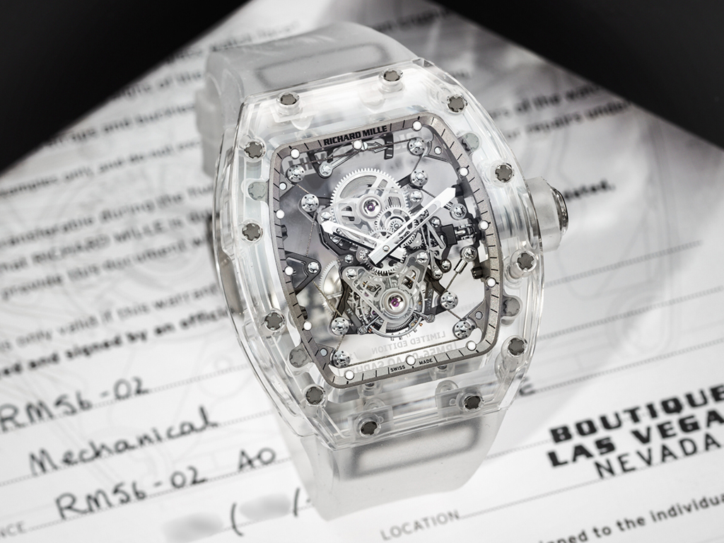 A Richard Mille RM 56-02 Sapphire Tourbillon watch was sold at Christie’s New York in June last year for US$3.02 million. Crafted entirely from sapphire crystal and boasting a cable-suspended movement and ultra-light construction, this limited-edition luxury timepiece offers full transparency. Released in 2014 and one of just 10 pieces worldwide, the model’s rarity is matched only by its technical audacity.