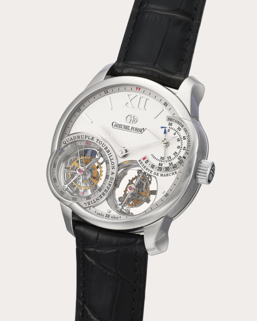 Greubel Forsey works on a strictly limited philosophy. The rarity of its hand-worked watches – like the Quadruple Tourbillon which uses two double tourbillons to enhance timekeeping accuracy – is compounded by the brand’s exclusivity, which in turn fuels desirability among collectors and impressive auction results. A Quadruple Tourbillon à Différentiel Sphérique with power reserve indication circa 2021 became a Christmas present for one lucky collector last December when Sotheby’s Hong Kong listed it at a high estimate of HK$2.5 million.