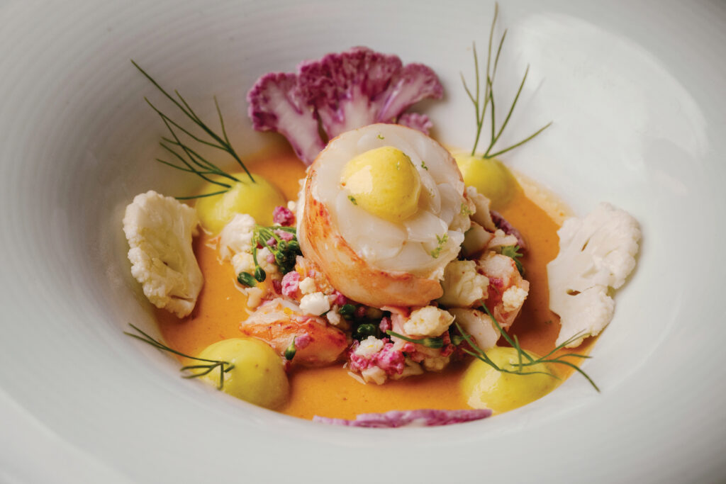 Dinner opens with the beef tartare served in bone marrow topped with a side of baguette toast. This dish is a jazz concert of textures and flavours, where the robust richness of the marrow encounters the delicate nuances of tender raw beef, all while a crispy crostini adds a relay of crunch. Schmitt remarks: “I wanted to modernise classic dishes. This tartare honours French traditions but introduces different textures for a surprising and fresh experience.”