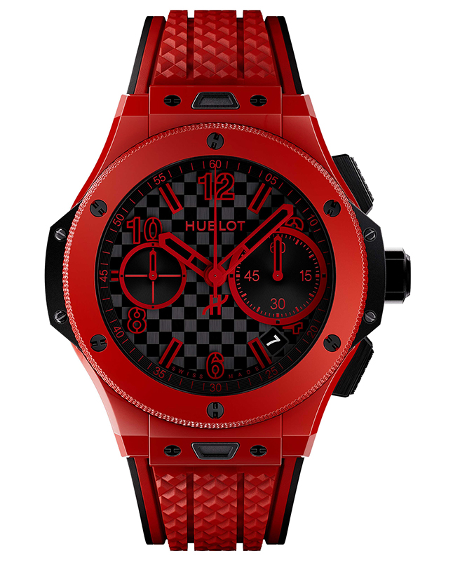 The Big Bang 20th Anniversary Red Magic pays homage to the red ceramic model first released in 2018 and features a carbon chequerboard-patterned dial that provides striking juxtaposition with the vividly coloured high-tech material of the case and bezel. All the models retain the distinctive Big Bang silhouette with signature pinched lugs and a knurled bezel edge, while special enhancements include a gold oscillating weight and the Hublot 20th anniversary logo engraved on the crown.