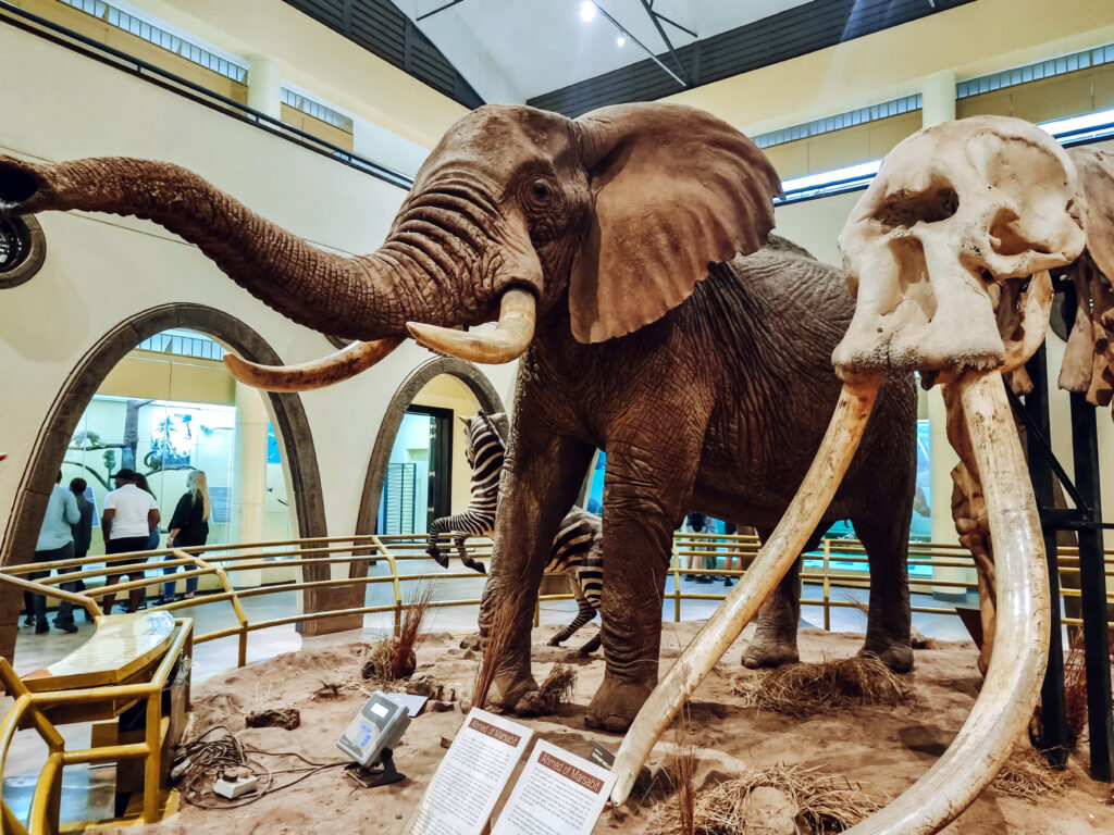 An extensive array of stuffed species spans an aardvark, a giant forest hog and an okapi (zebra giraffe). The Hominid Skull Room contains an extraordinary range of early human fossils in perhaps one of the best collections in the world. Another room is dedicated to the history of Kenya in the context of East Africa.