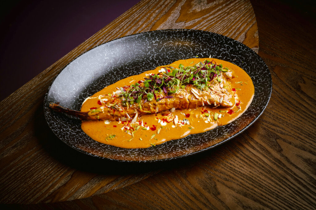 If it’s culinary nostalgia you crave, look no further than the chef’s chicken tikka kulcha. This delightful dish fuses juicy grilled chicken with pillowy Indian flatbread, accompanied by marinated onions and an animated mint and tomato chutney. Chicken tikka mirza hasnu pays tribute to the court of Asaf-ud-Daulah, inviting anyone to savour char-grilled chicken infused with a symphony of spices such as cloves, cardamom and smoky mango powder.