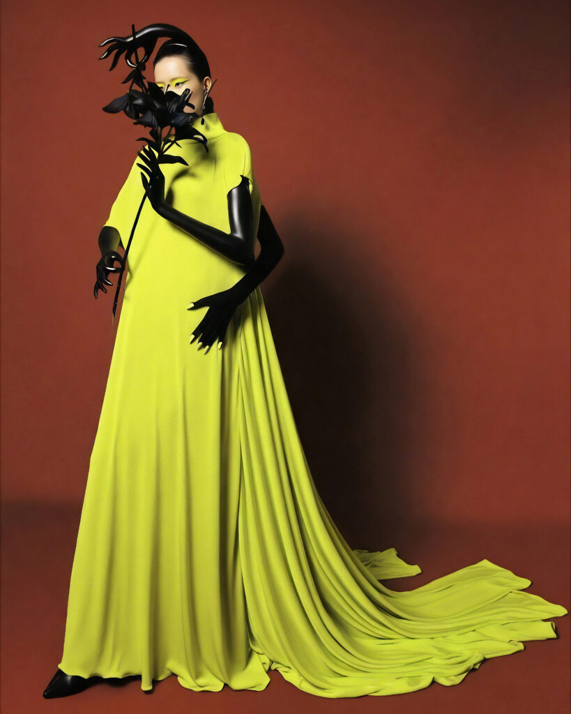 Yellow green gown by Robert Wun